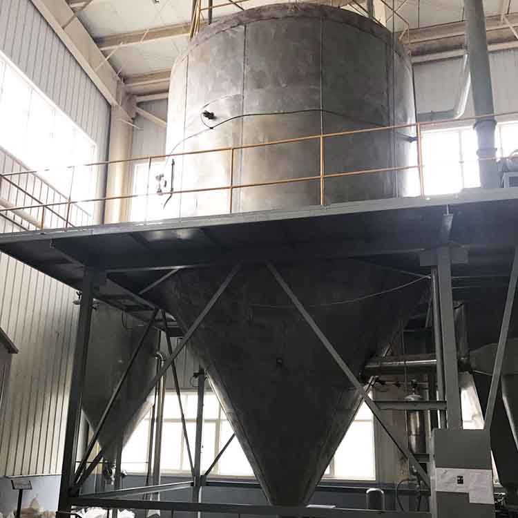 3、噴霧干燥機生產(chǎn)過程簡化,操作控制方便。對于濕含量40-60%(特殊物料可達90%)的液體能一次干燥成粉粒產(chǎn)品,干燥后不需粉碎和篩選,減少生產(chǎn)工序,提高產(chǎn)品純度。對產(chǎn)品粒徑、松密度、水份,在一定范圍內(nèi)可通過改變操作條件進行調(diào)整,控制和管理都很方便。