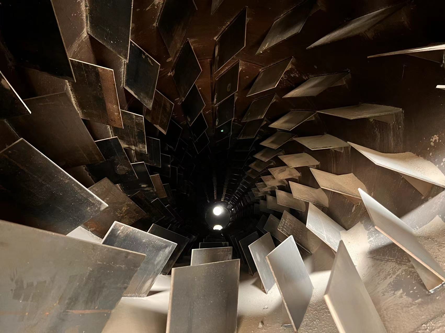 濕物料從干燥機一端投入后,在內(nèi)筒均布的抄板器翻動下,物料在干燥器內(nèi)均勻分布與分散,且與并流( 逆流 )的熱空氣充分接觸 ,加快了干燥傳流、傳質(zhì)推動力。在干燥過程中,物料在帶有傾斜的抄板和熱氣流作用下,可調(diào)控地運動至干燥機另一端星形卸料閥排出成品。