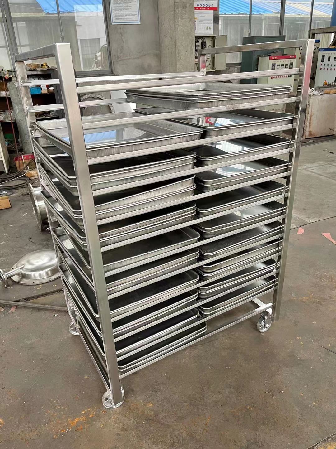 1.一次成型壓制卷邊烘盤是專為熱風循環(huán)烘箱配套產品,標準尺寸:640×460×45mm,也可根據用戶要求非標制作,材質有鋁合金、不銹鋼。