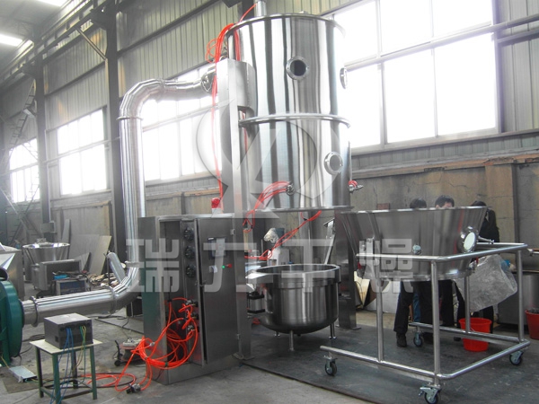 沸騰制粒機(jī)又稱(chēng)一步造粒機(jī),它是利用粘合劑的粘結(jié)作用,固體粉末間相互架橋、團(tuán)聚,從而逐漸形成顆粒。