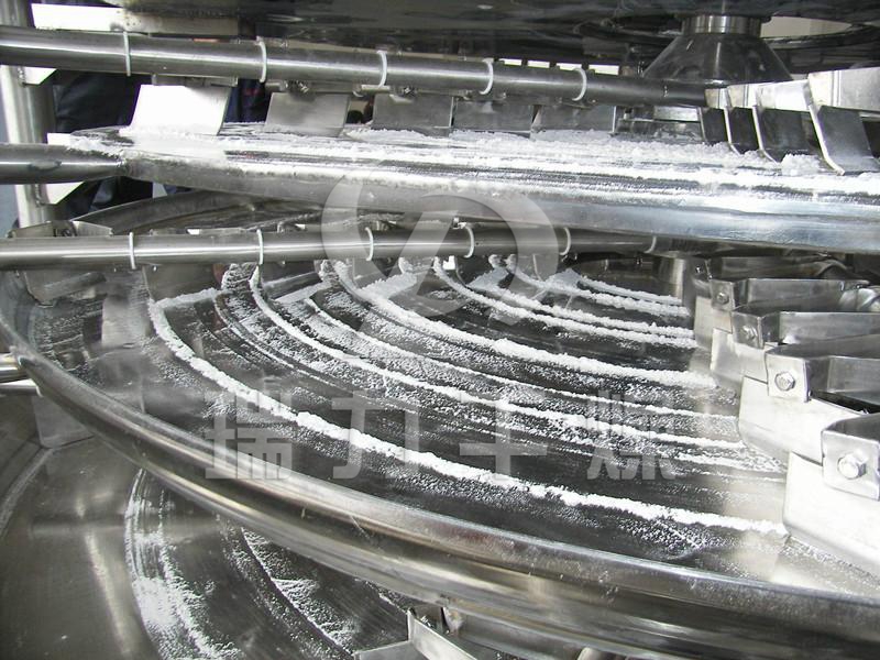 二、頭孢曲松鈉專用盤式干燥機概述:頭孢曲松鈉專用盤式干燥機是一種高效的傳導(dǎo)型連續(xù)干燥設(shè)備。其獨特的結(jié)構(gòu)和工作原理決定了它具有熱效率高、能耗低,占地面積小、配置簡單、操作控制方便、操作環(huán)境好等特點,廣泛適用于化工、醫(yī)藥、農(nóng)藥、食品、飼料、農(nóng)副產(chǎn)品加工等行業(yè)的干燥作業(yè)。在各行業(yè)使用實踐中深受好評?,F(xiàn)生產(chǎn)制造常壓、密閉、真空三大類型、1200、1500、2200、3000四種,A(碳鋼)、B(接觸物料部分均布不銹鋼)、C(在B的基礎(chǔ)上,增加蒸汽管路、主軸及支架為不銹鋼,筒體和蓋頂內(nèi)襯不銹鋼)。三種材質(zhì),干燥面積4~180m 2,共幾百種型號的系列產(chǎn)品,并能提供與之相配套的種輔助設(shè)備,可滿足用戶對各種物料進行干燥的需要。